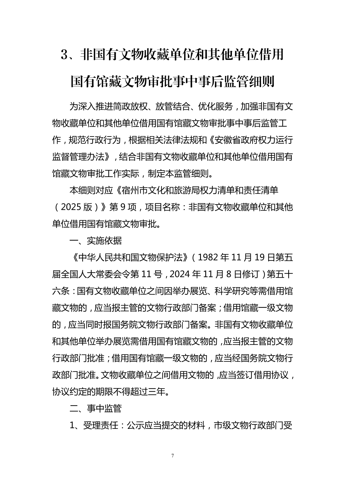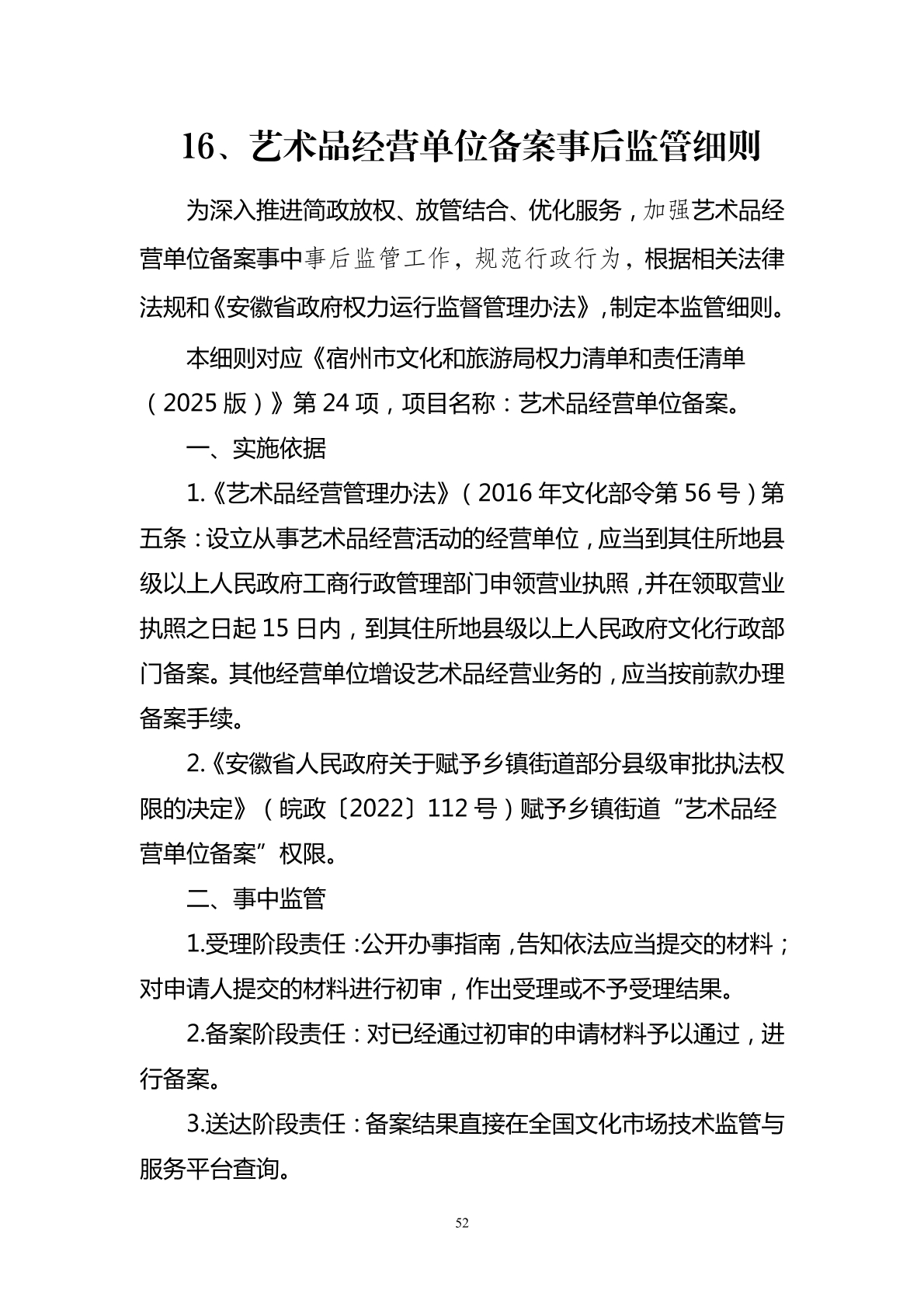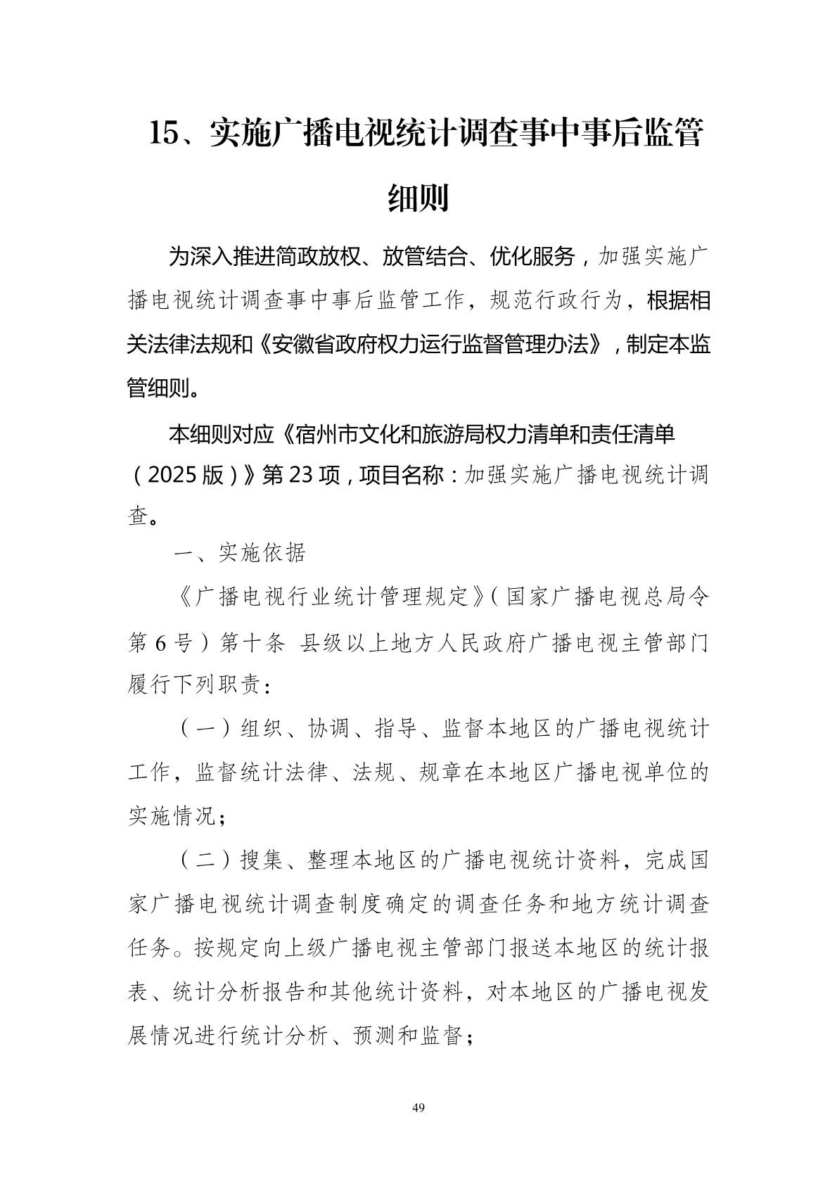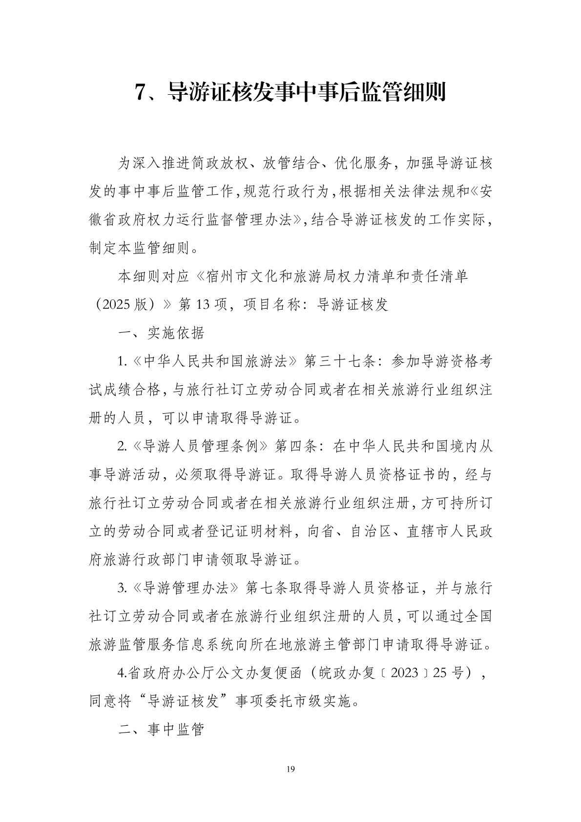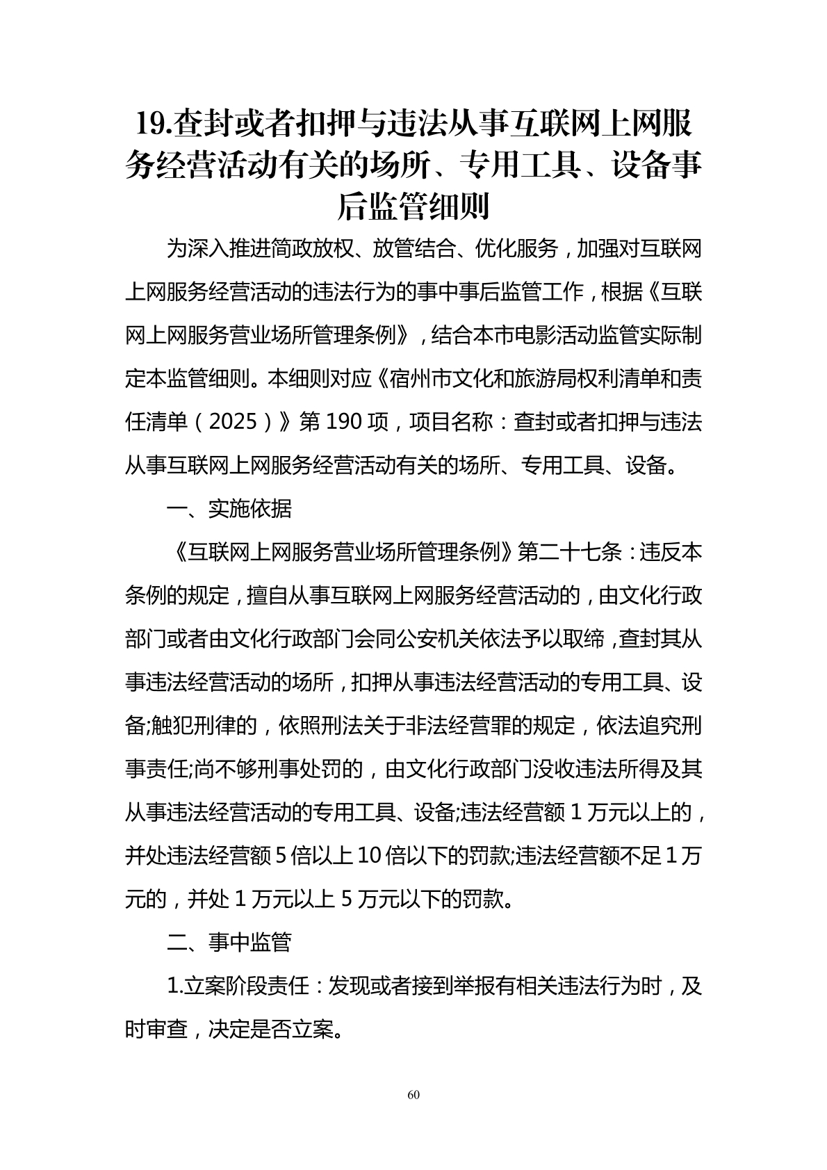 宿州市文化和旅游局事中事后监管细则