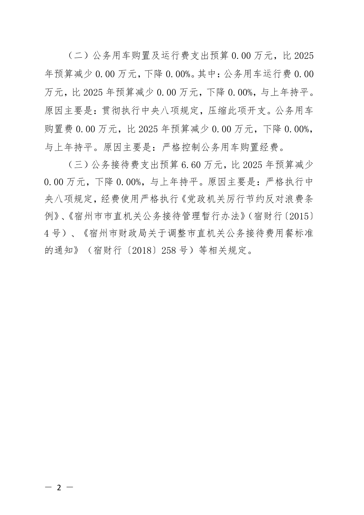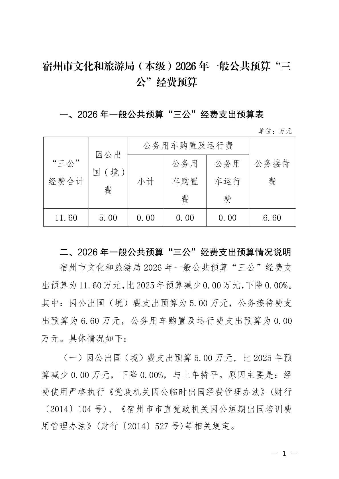 宿州市文化和旅游局(本级)2026年一般公共预算“三公”经费预算 |