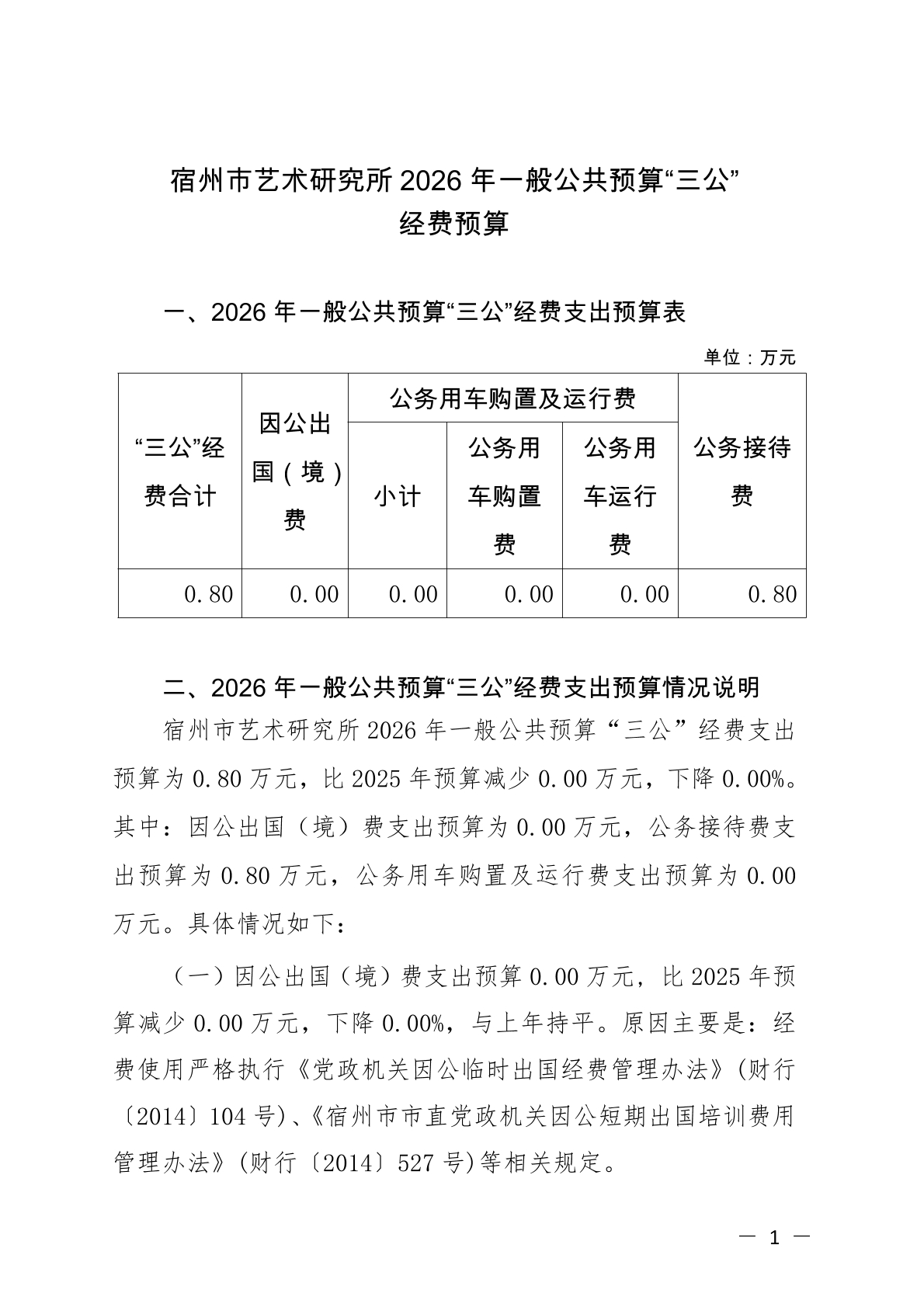 宿州市艺术研究所2026年一般公共预算“三公”经费预算