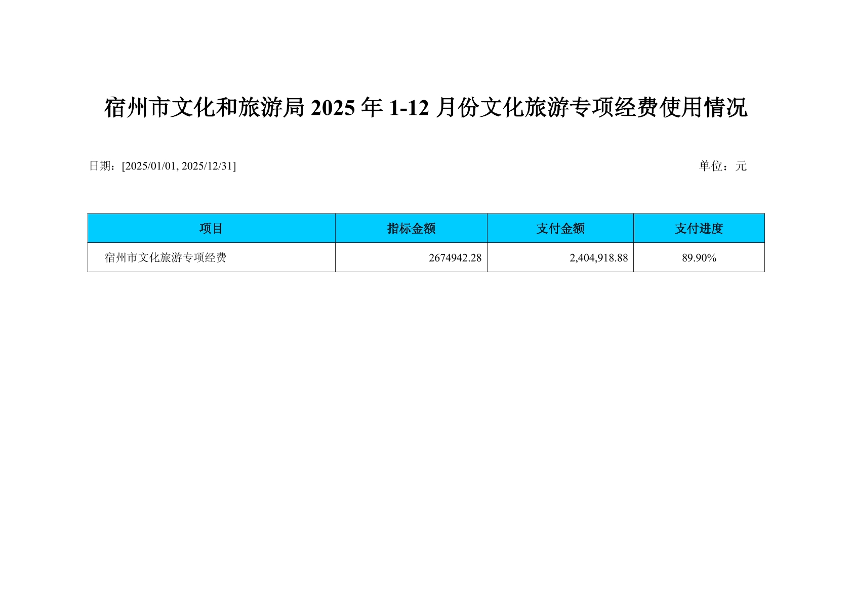 宿州市文化和旅游局2025年1-12月份文化旅游专项经费使用情况 |